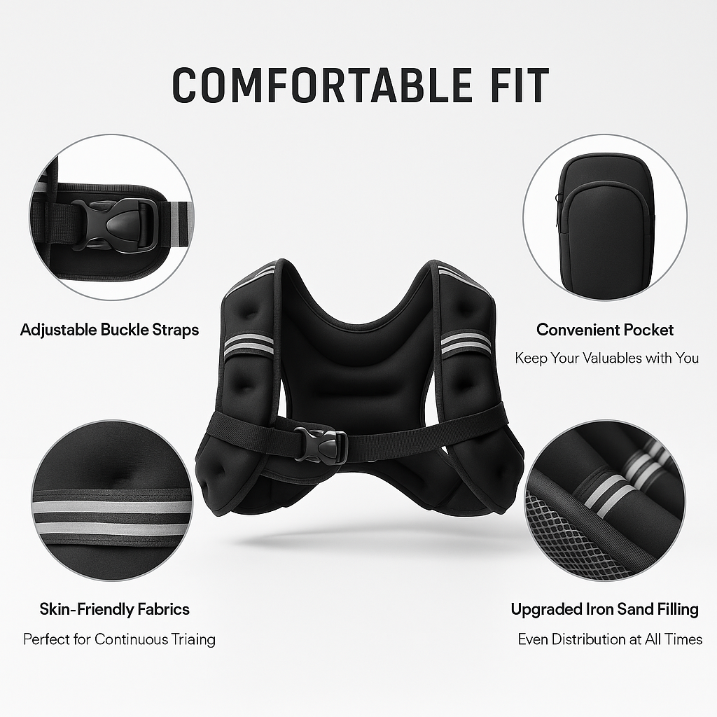 - 🔒 Adjustable Buckle Strap: A customizable fit for all body types, keeping the vest snug and secure through intense motion.